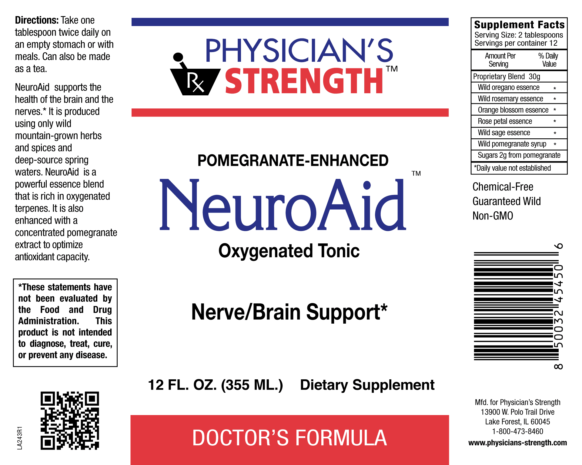 Essence of oregano, rosemary, neroli, rose petal, wild sage and pomegranate syrup; nerve and brain support